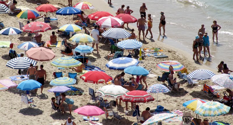 Amanece en Calpe. Sobre la atalaya se derraman, a pesar de la negrura de los edificios que asolan la belleza de la bahía, los primeros rayos de color naranja. La serpiente de turistas se despereza. Los más impacientes inician a esta hora la «ocupación» de la primera linea de playa con sus sombrillas coloridas. ¡Qué esplendor!